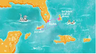 Sail from vibrant Miami to the laid-back streets of Key West, ending in the sun-soaked beauty of Bimini — each stop a unique escape.