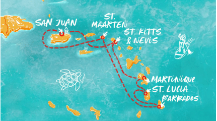 Destination: San Juan, St. Maarten (Philipsburg), Bridgetown (Barbados), Castries, Fort De France, Basseterre, St. Kitts